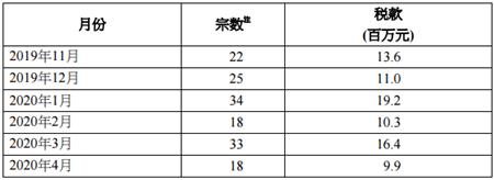 此外,最近六個月涉及「額外印花稅」的宗數(shù)及款額表列如下:
